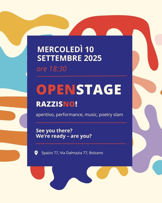Ein Abend mit Aperitif, Performances, Musik und poetry slam findet am Mittwoch, den 10. September in Bozen statt.